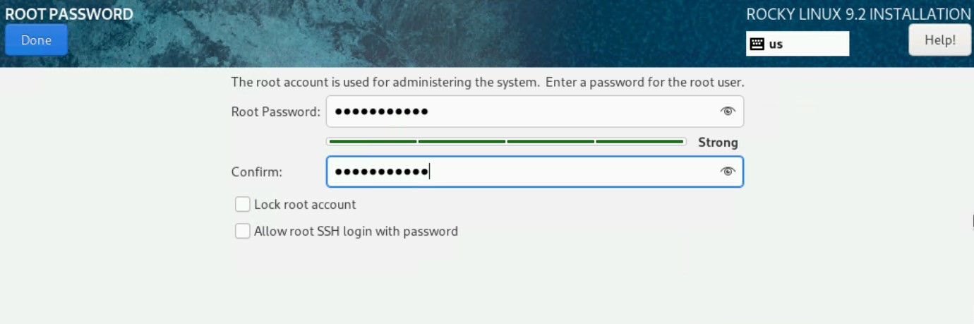 - Configure the Root Password.