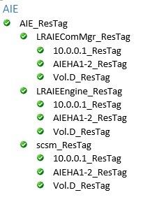 The LRAIEComMgr_ResTag and LRAIEEngine_ResTag resource hierarchies are only displayed if you selected the AIE Enabled check box in the HA Setup tool.