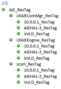 The LRAIEComMgr_ResTag and LRAIEEngine_ResTag resource hierarchies are only displayed if you selected the AIE Enabled check box in the HA Setup tool.