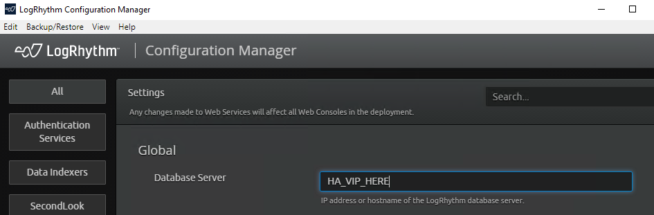 Before the rest of the HA configuration can be done, LogRhythm needs to be configured on the primary node to work with the shared Name and IP.