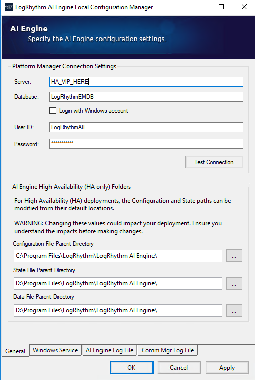 AI Engine - Open the AIEngine Configuration Manager and update the General tab.