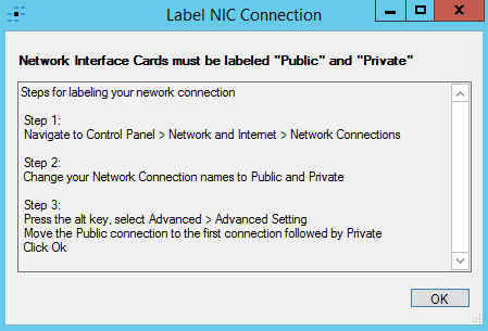 You may see the following message if you have not already configured your Public and Private Network Connections.