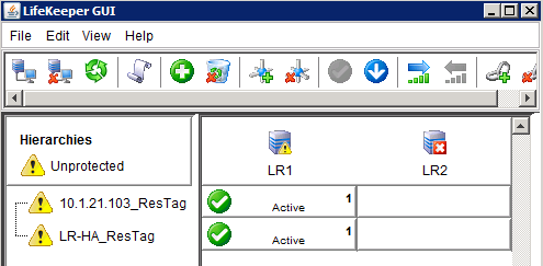 Switch back to the LifeKeeper GUI and verify that you have a completed resource hierarchy that looks like the following: