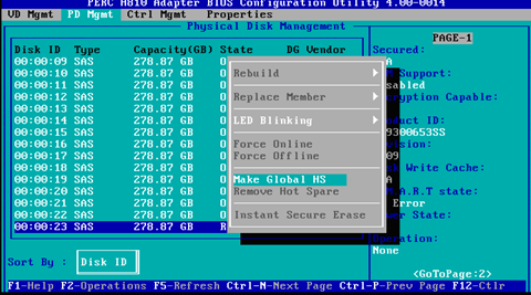 11. Select disk 23, press F2, select Make Global HS, and then press Enter.