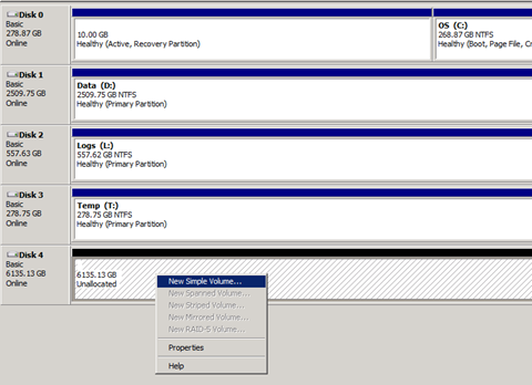 3. Right-click the new disk, and then click New Simple Volume.