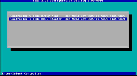 3. After the utility loads, select the newly installed PERC adapter, and then press Enter.