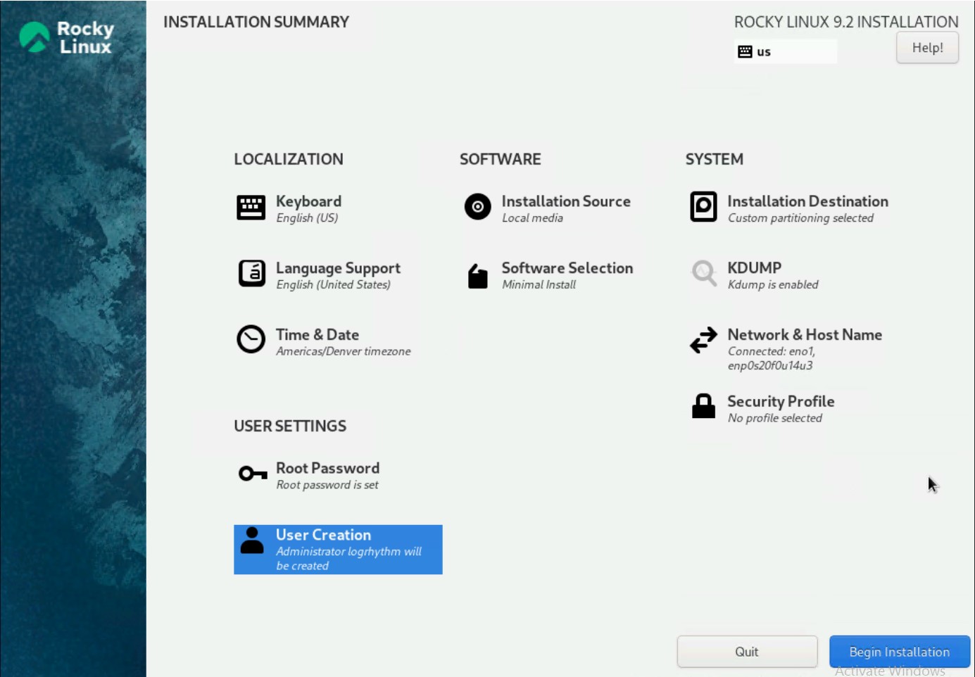 - The Rocky Linux 9/RHEL9 Setup wizard is requires the following input: