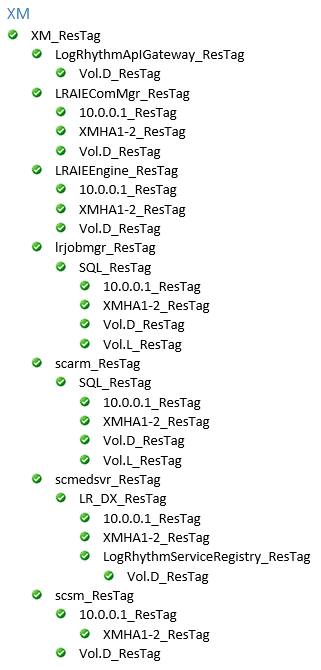 The extended resource hierarchy should look like this with HA1 Active and HA2 on Standby or Mirroring: