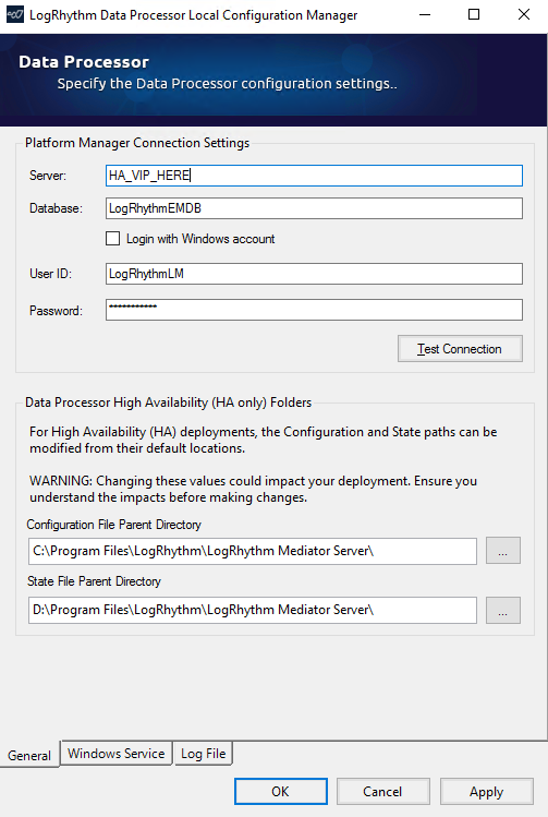 Data Processor - Open the Data Processor Configuration Manager and update the General tab.