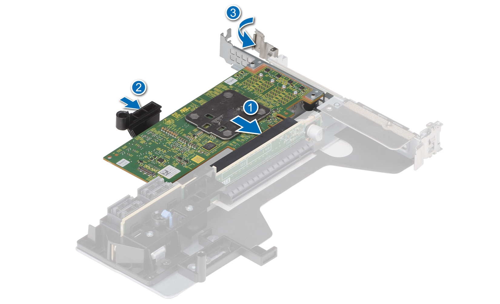 - Insert the RAID controller in one of the available slots, making sure it is fully seated and locked in place.