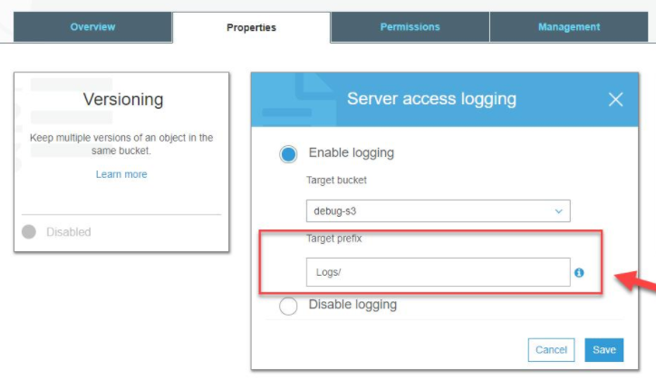 - This should be the logs/ folder you created in the target bucket. All data in subfolders will be ignored.
