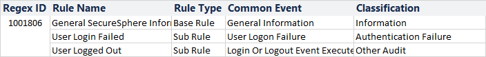 Regex ID | Rule Name | Rule Type | Common Event | Classification |