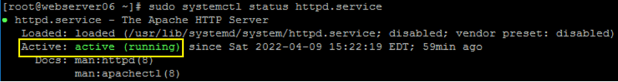 Confirm the Apache web server service is Active: