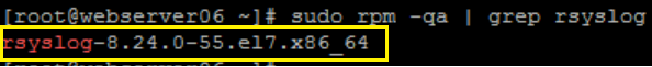 CODEsudo rpm -qa | grep rsyslogExample of expected output:
