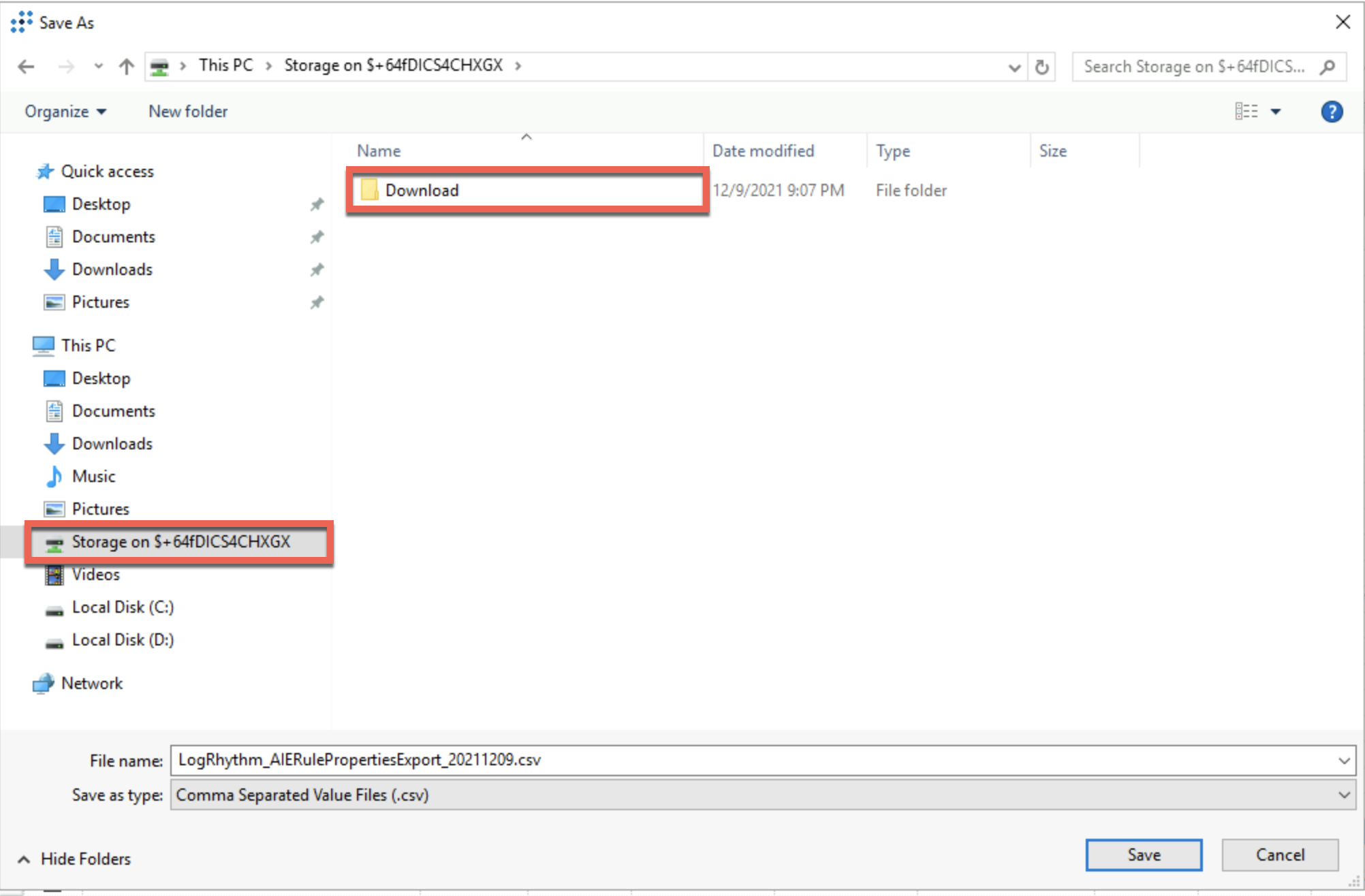 - Select the Download folder as your destination to save the file.