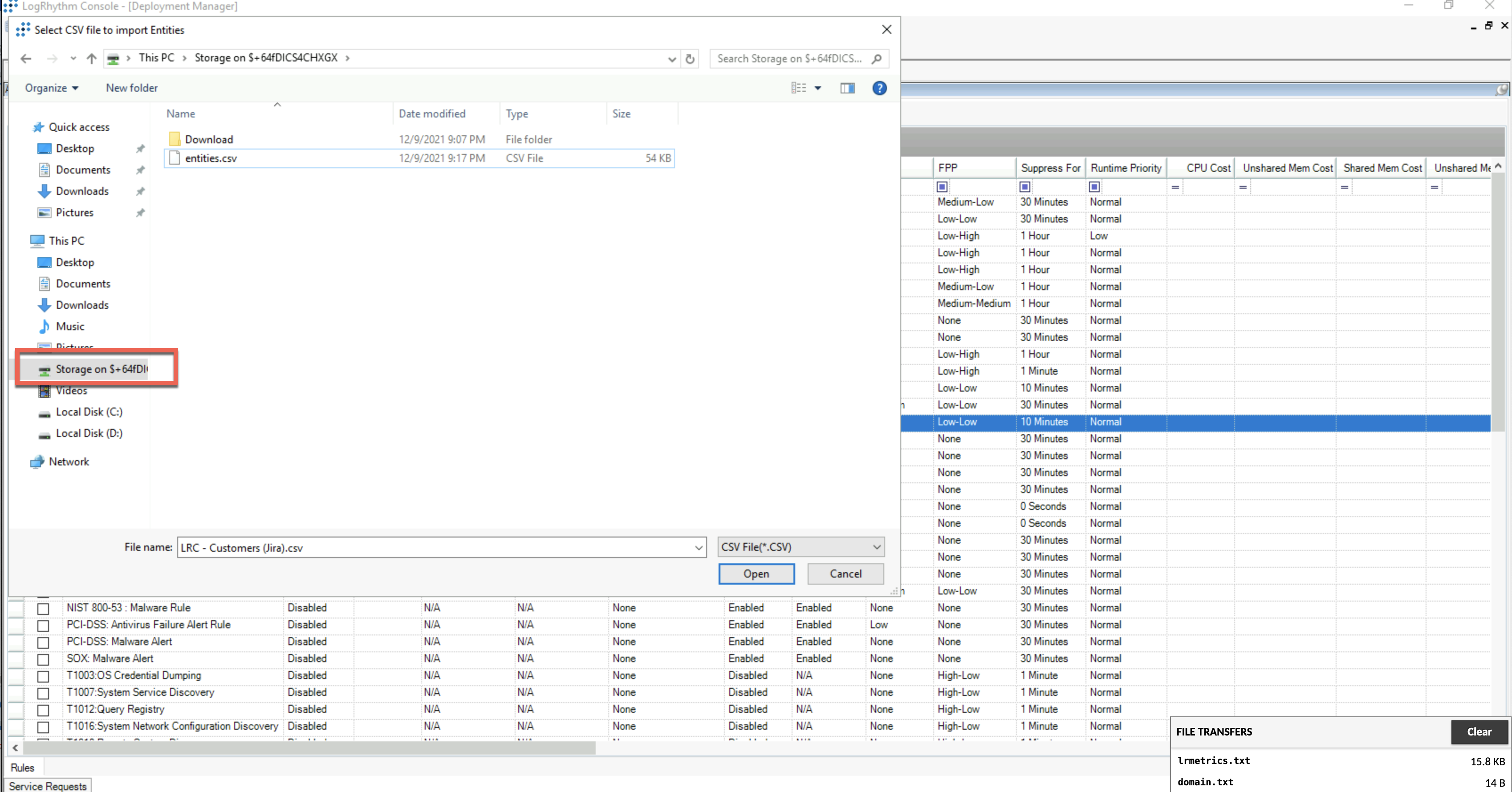 A small window appears in the bottom-right corner of the browser window which indicates the transfer progress. - Follow the procedure to import and upload a file in the Client Console.