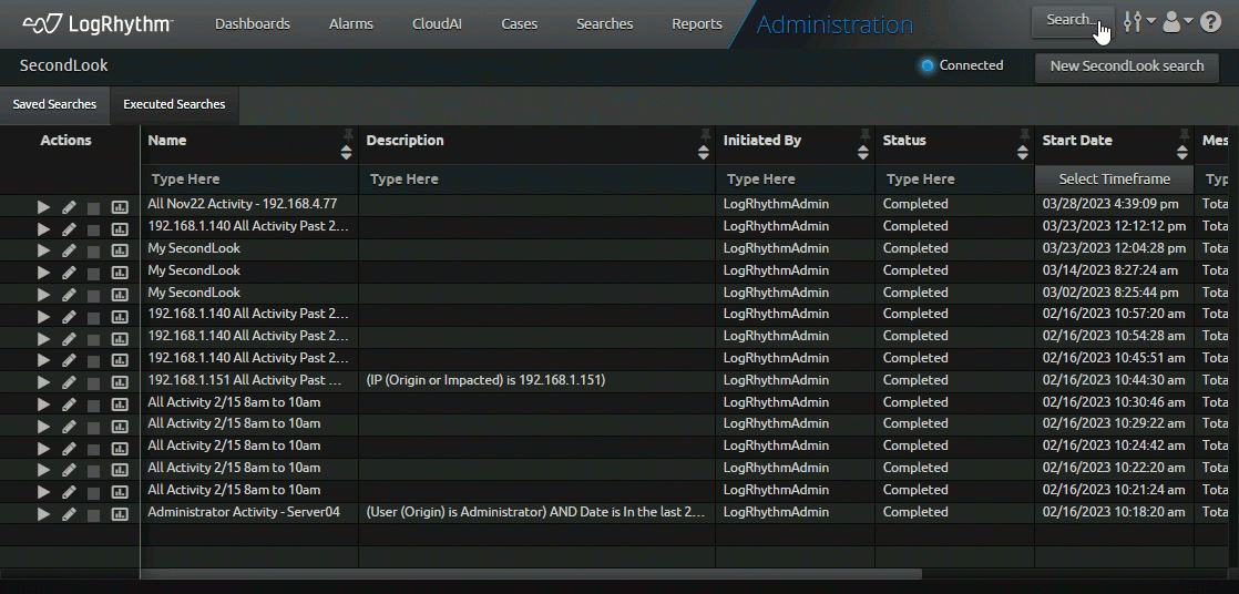 Customers want to retain their data, and they need an easy way to find their older data. With LogRhythm 7.13, customers who use our self-hosted SIEM option now have access to SecondLook. After installing and configuring SecondLook, customers can query data and search through archives directly from the Web Console. Without having to pivot between the Web Console and Client Console, customers save valuable time. Using SecondLook also means searches are passed off to a dedicated service for a more reliable user experience.