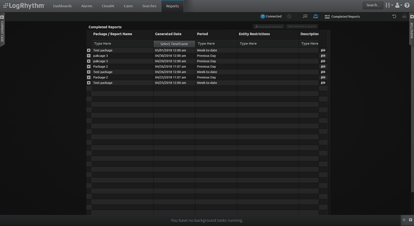 The Reports page provides you with a customizable, widget-based web interface for direct access to their authorized report packages. Available report packages, including the individual reports inside them, display in a grid format that you can filter and sort as needed. From the Reports grid you can also view additional package and report details, download reports in PDF format, and run new searches based on report criteria.