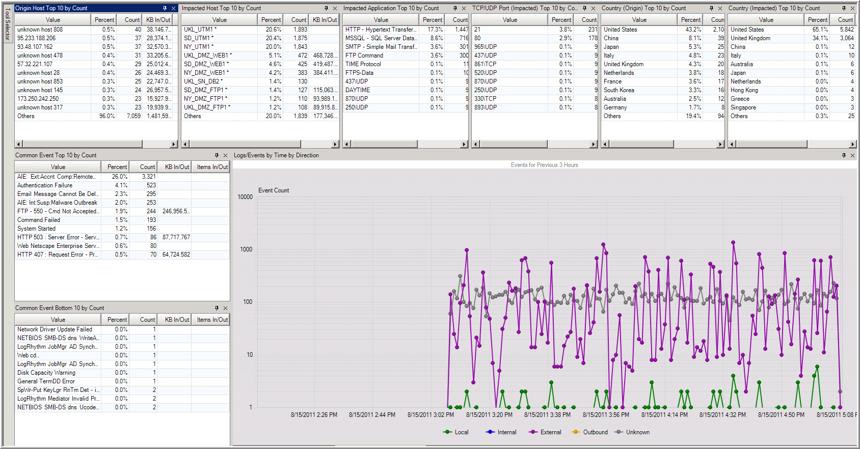 • Configure TopX tools to show the top 10 attackers, target hosts, target applications, and countries or origin to obtain high-level visibility into threats.
