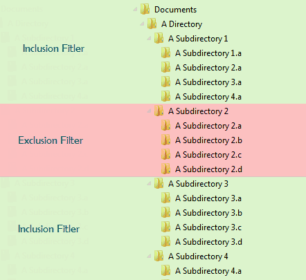 - If a directory matches an exclude filter, then that directory and all its files and subdirectories are excluded.