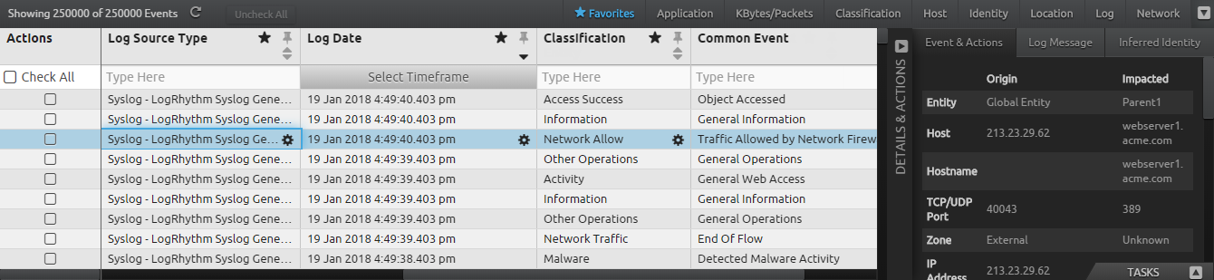 - Raw Logs. The unprocessed data sent from Agents. You can view the raw log by selecting an entry (row) in the grid and then clicking on the Log Message tab in the Details & Actions pane.