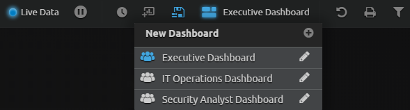 Dashboards refer to the interchangeable widget-based user interfaces on the Dashboards page, Analyze page, Cases page, and Reports page. Predefined dashboards are available for these pages, but you can also create, customize, and save additional dashboards to accommodate your different information needs.