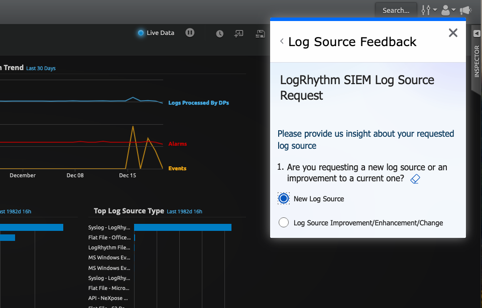 Quickly request support for new log sources from the Web Console. This built-in feature makes providing feedback simple, convenient, and accurate.