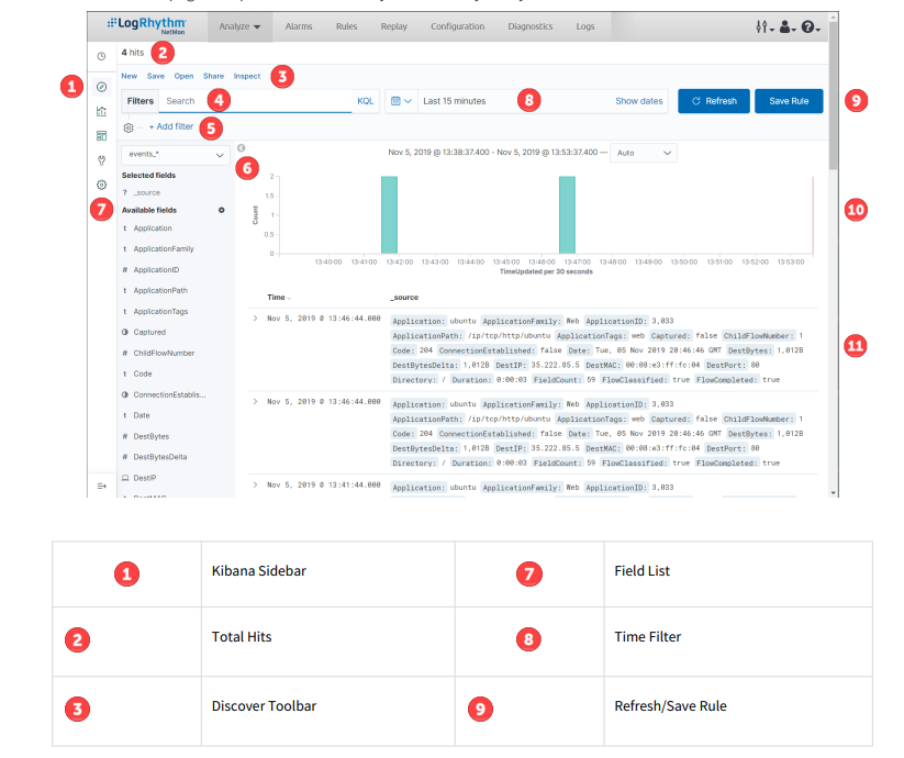 Use the Discover page to explore data from every session analyzed by NetMon.