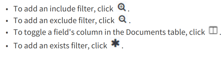 You can use the Discover page to build tables as you submit search queries, filter the search results, and view document data. You can also see the number of documents that match any search query and get field value statistics. The distribution of documents over time appears in a histogram at the top of the page.